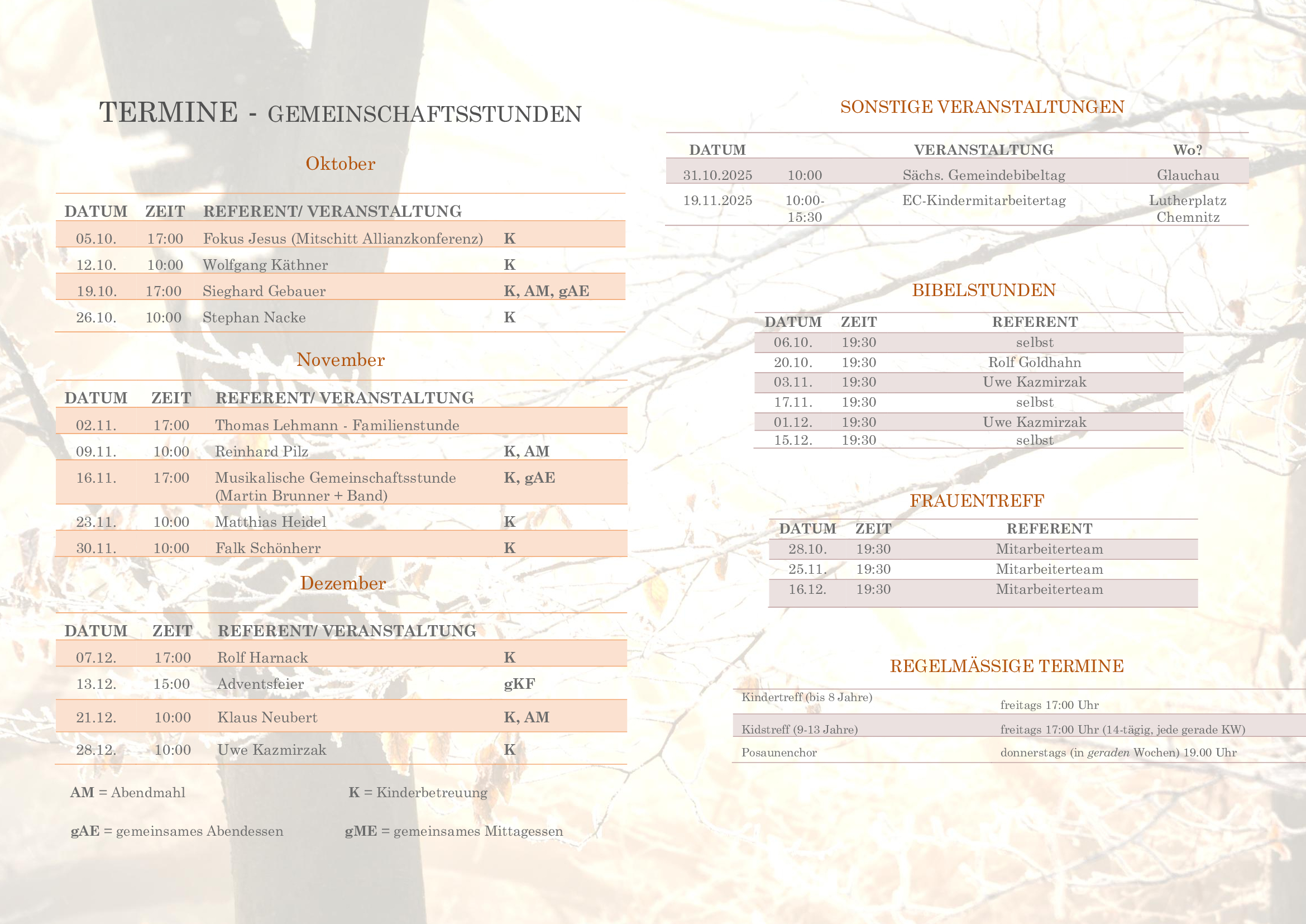 Wir sind Mitglied des Landesverbandes Landeskirchlicher Gemeinschaften Sachsen bzw. im Sächsischen Jugendverband "Entschieden für Christus"